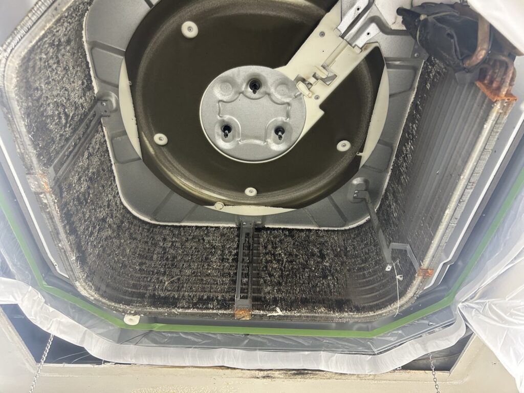 熱交換器には人の油や埃がびっしりと詰まります。